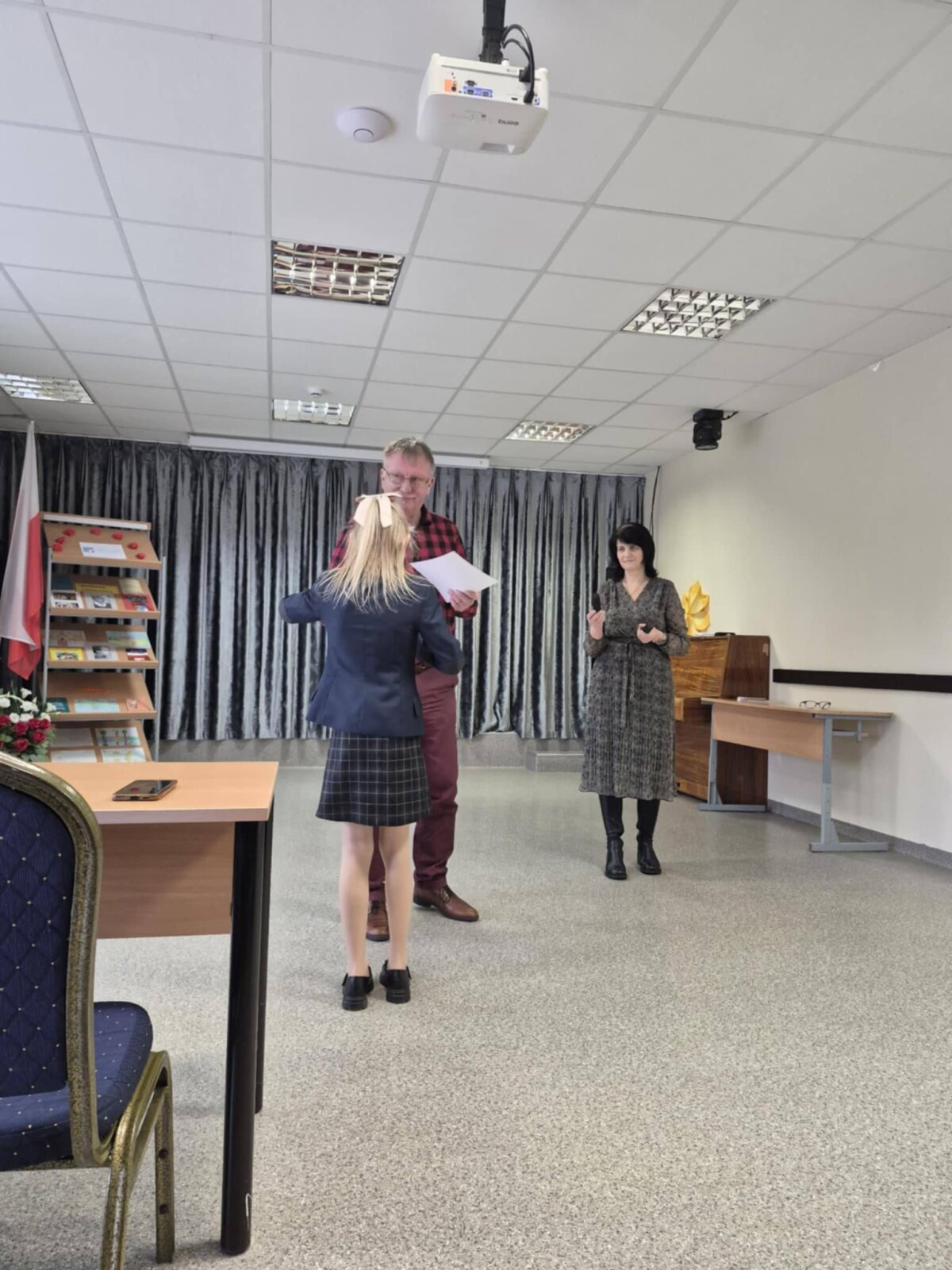 Nasze Gimnazjum im. Longina Komołowskiego reprezentowała pięcioosobowa grupa uczniów. Każdy z nich zaprezentował przygotowany utwór z dużym zaangażowaniem i odwagą. Chociaż w tym roku nie zdobyliśmy żadnych miejsc, wszyscy wróciliśmy z poczuciem satysfakcji – udział w konkursie dał nam radość, nowe doświadczenia oraz motywację do dalszej pracy nad sztuką interpretacji poezji. Sam występ na scenie i możliwość dzielenia się słowem okazały się dla nas nagrodą samą w sobie.
