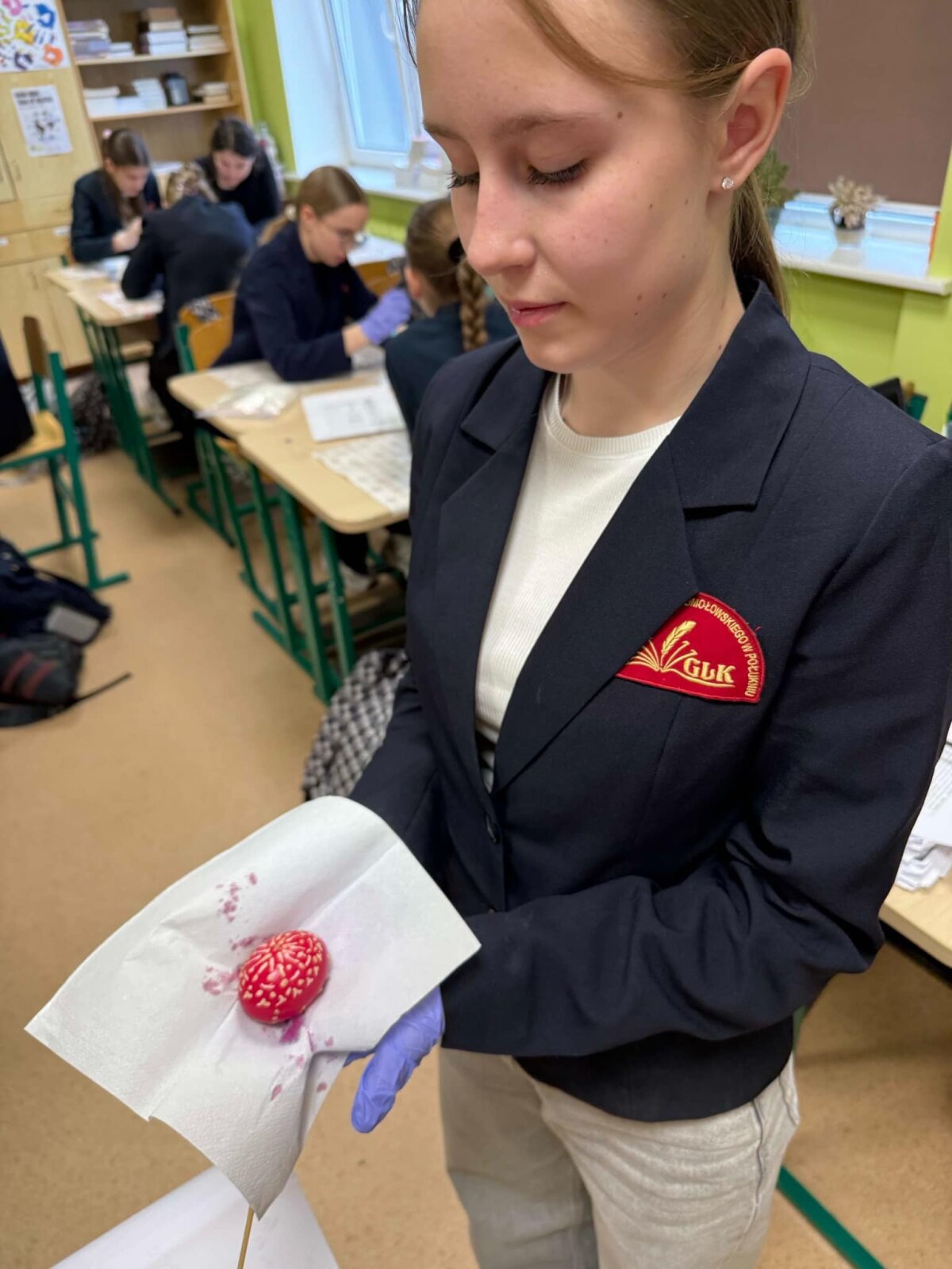 Antroje pamokos dalyje vyko praktinė veikla – margučių marginimas vašku, pasitelkiant senąsias lietuvių ir lenkų tradicijas bei simboliką.