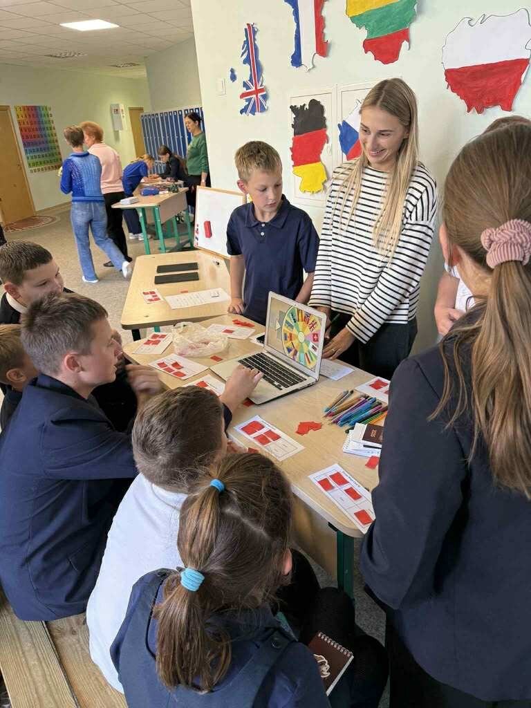 Rugsėjo 26-ąją, minėdami Europos kalbų dieną, mūsų gimnazijoje surengėme Europos kalbų dienos šurmulį. Jo metu mokiniai galėjo dalyvauti įvairiuose žaidimuose: spręsti logines užduotis apie Europos šalis, dėlioti šalių dėliones, žaisti bingo ir kitus smagius žaidimus. Be to, kiekviena klasė kūrybiškai pristatė pasirinktą šalį piešdama plakatus.