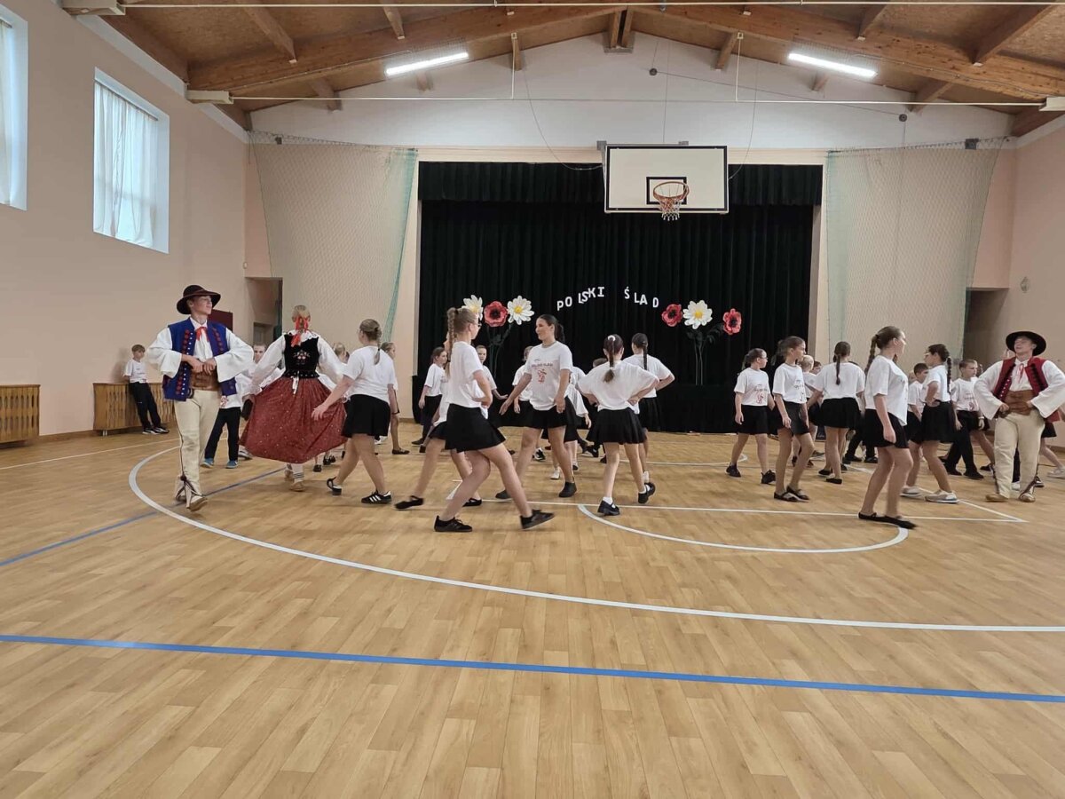 W dniach 16–23 września 2025 r. odbyły się wyjątkowe warsztaty muzyczno-taneczne „Polski ślad”, które na długo pozostaną w pamięci uczestników. Przez kilka wrześniowych dni szkolne korytarze wypełniły się echem ludowych melodii, a serca uczniów porwał rytm tańców, niosąc ze sobą radość i poczucie wspólnoty.