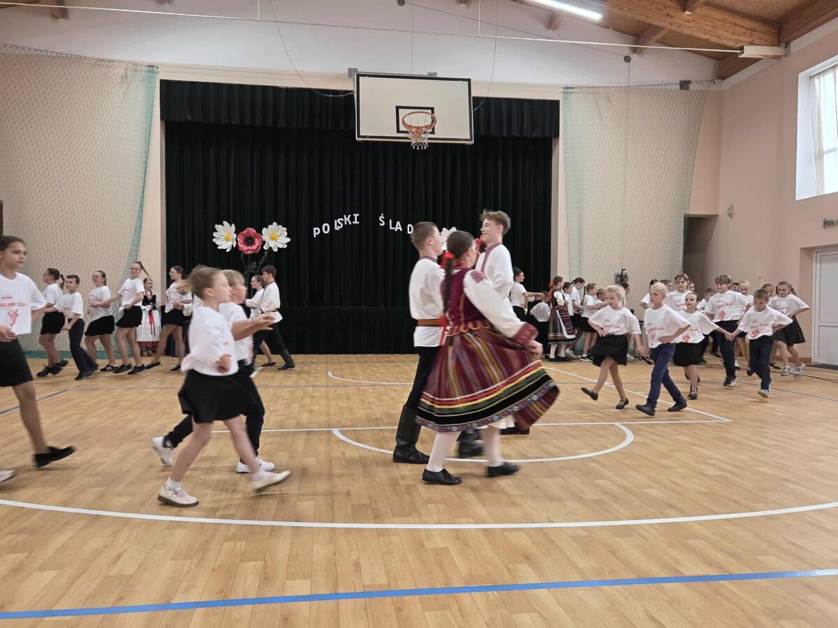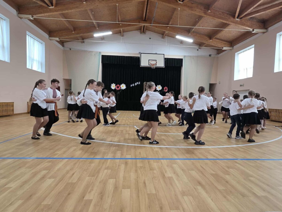 Warto podkreślić, że wraz z naszymi uczniami w warsztatach uczestniczyli także uczniowie z Gimnazjum w Trokach oraz z Oddziału Progimnazjum im. Andrzeja Stelmachowskiego w Starych Trokach. Wspólna nauka i zabawa stały się doskonałą okazją do integracji młodzieży z różnych szkół i wzmocniły więzi między naszymi społecznościami. Warsztaty były nie tylko lekcją tańca, lecz także cenną lekcją kultury i historii, która pozwoliła młodzieży lepiej zrozumieć polskie dziedzictwo. Wspólna zabawa i taniec zintegrowały uczestników, a na twarzach wszystkich przez cały czas gościł uśmiech.