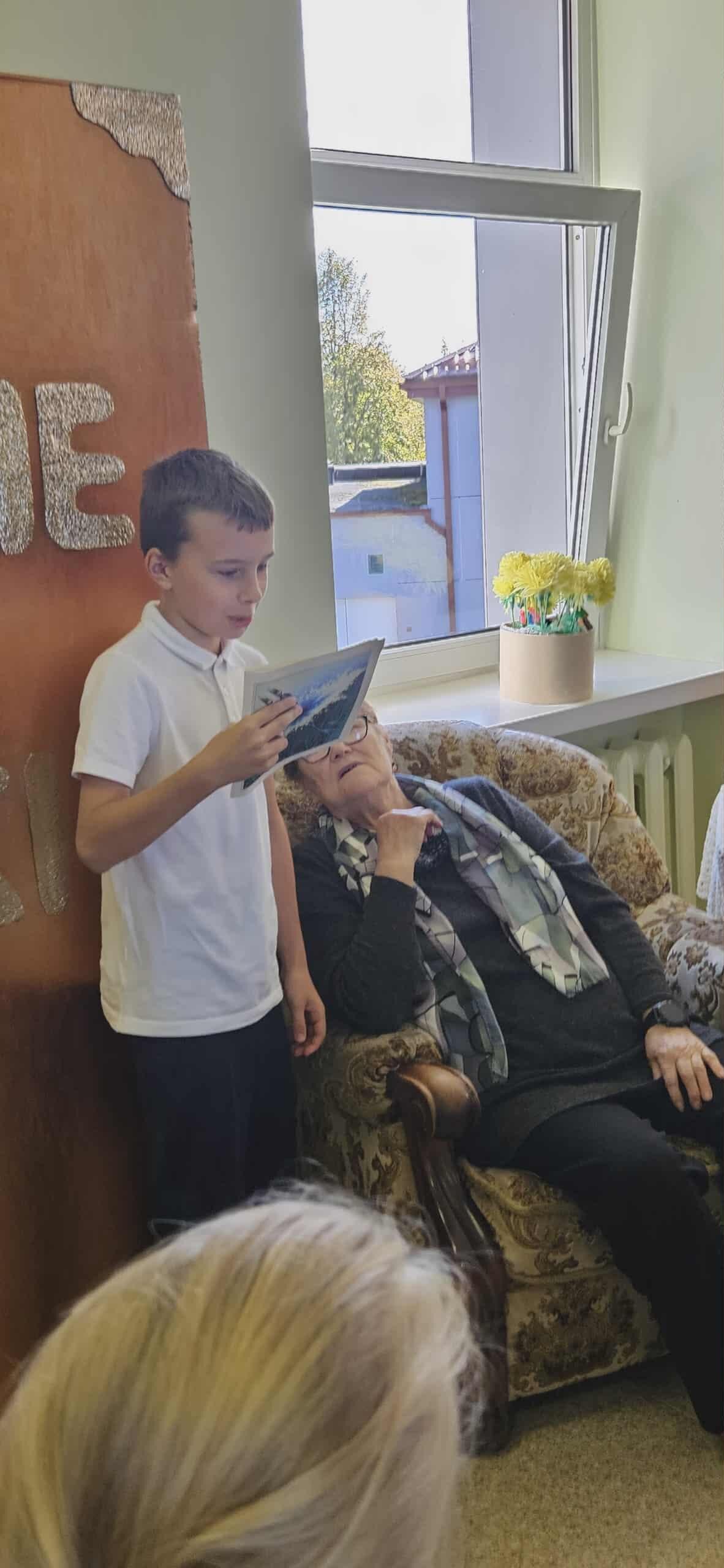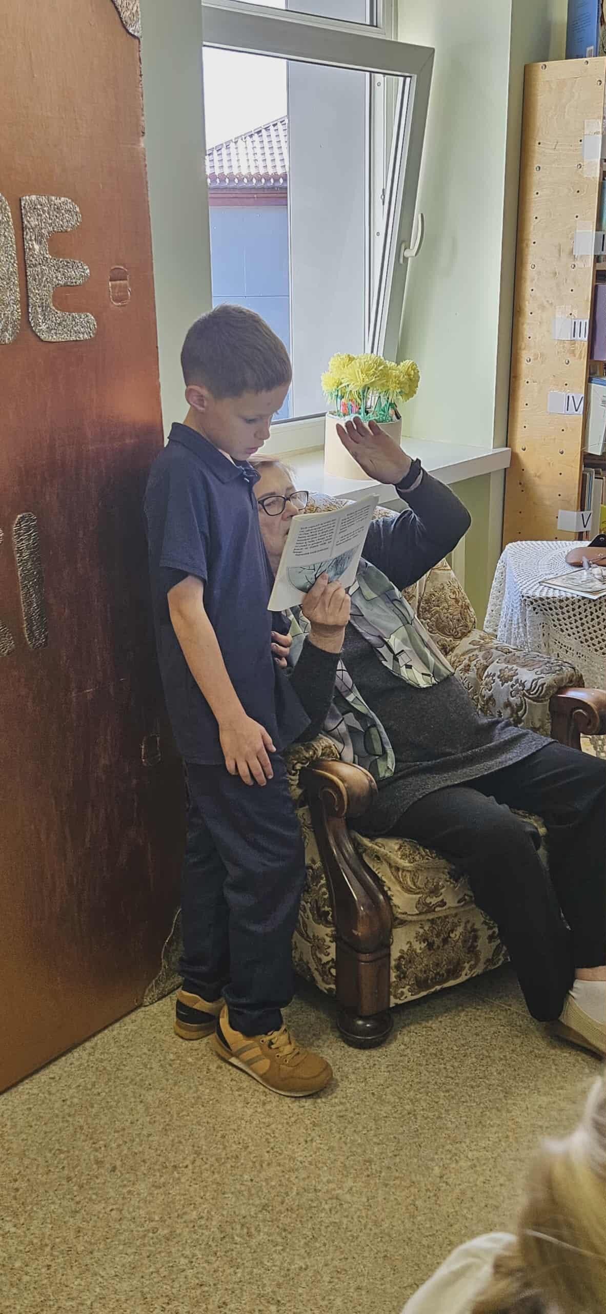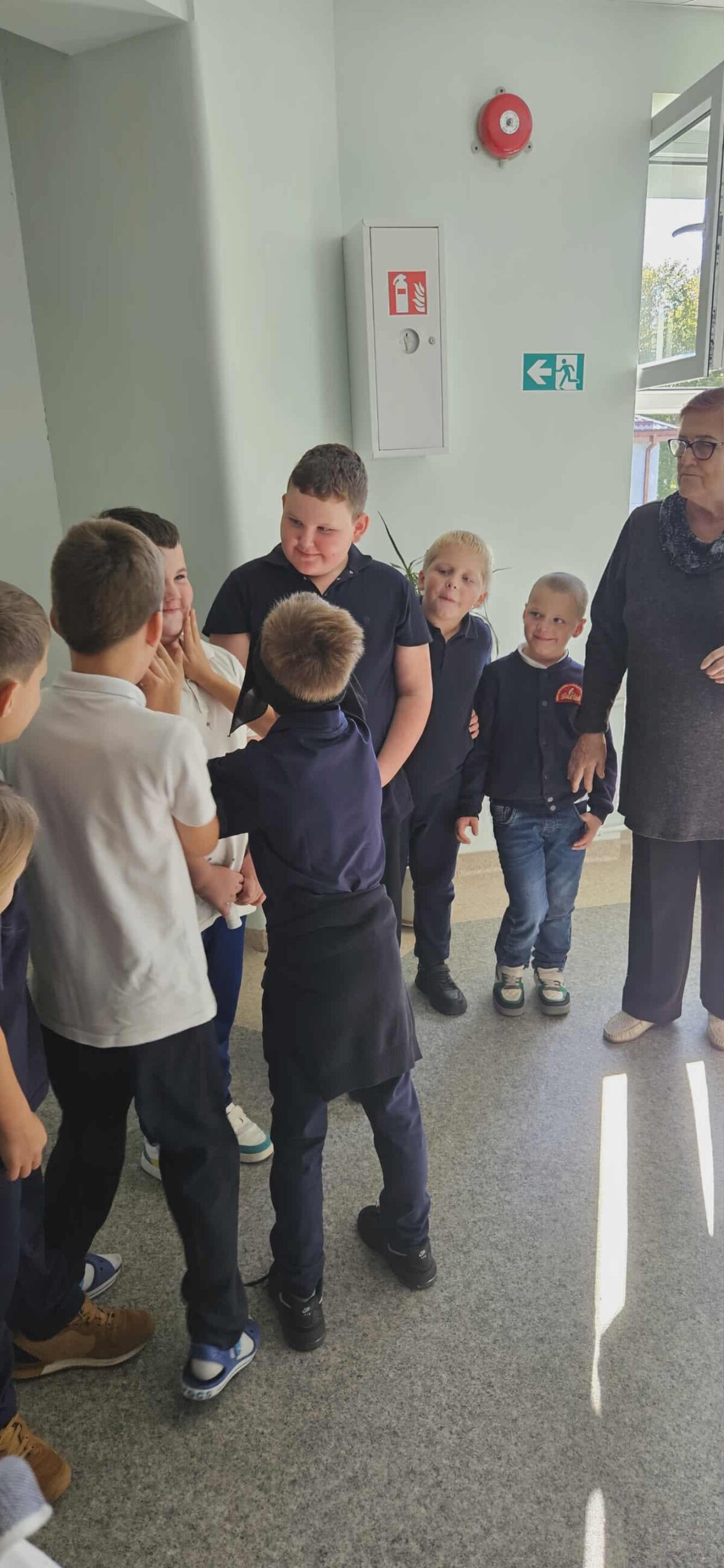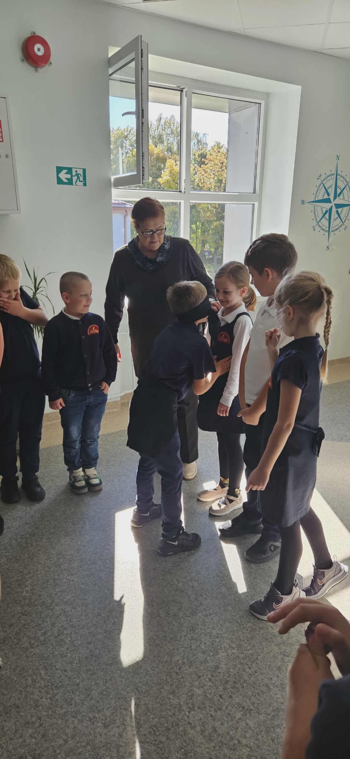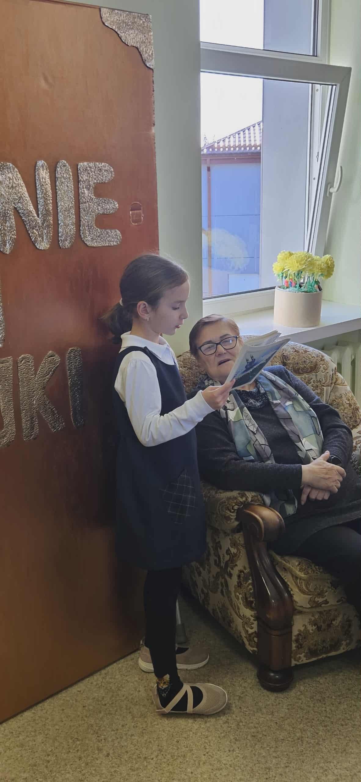 Dzisiaj, podobnie jak w ubiegłym roku szkolnym, do biblioteki Gimnazjum im. Longina Komolowskiego zawitała Babunia. Przeczytała uczniom klas 1–4 bajkę o topielcu, który chciał się ożenić. Dzieci z zachwytem słuchały opowieści, a następnie same, na zmianę, czytały dla Babuni.