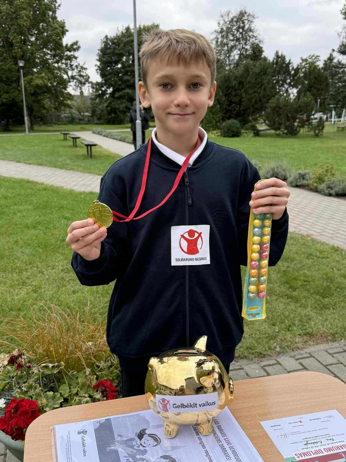 Uczniowie klasy 5 naszego gimnazjum z radością wzięli udział w Biegu Solidarności 2025, organizowanym przez „Ratujmy Dzieci / Gelbėkit vaikus” wraz z partnerami. Dzięki zaangażowaniu dzieci oraz wsparciu rodziców i sponsorów udało się zebrać aż 340 euro na cele charytatywne.