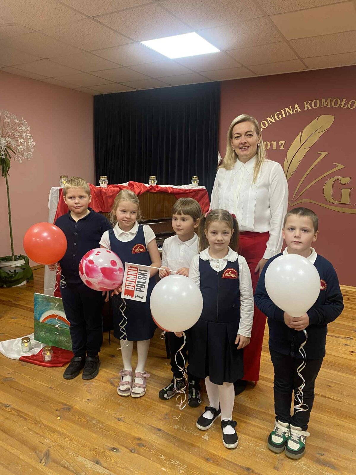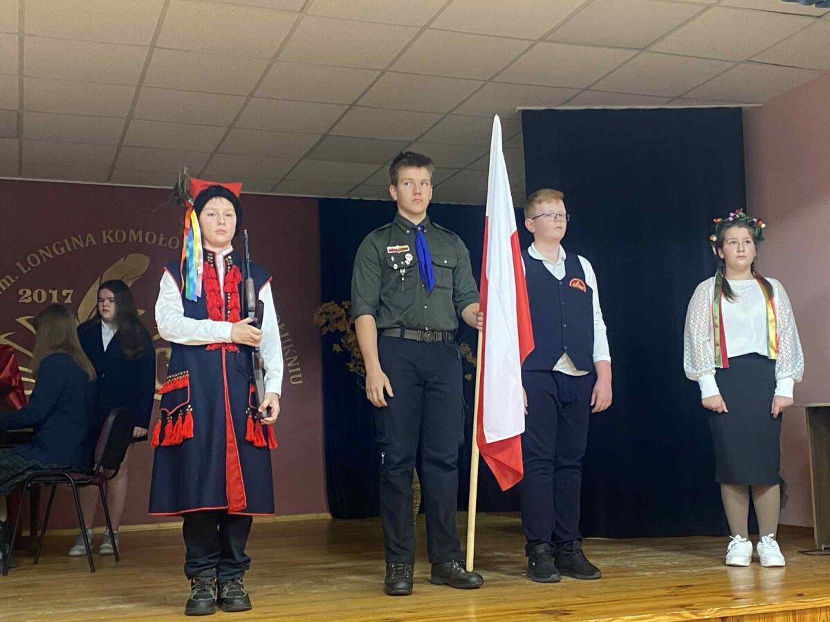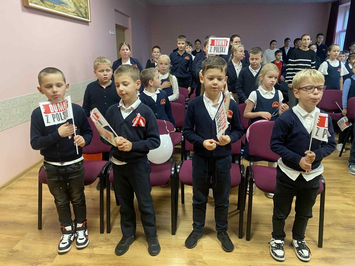 W programie uroczystości znalazła się poruszająca scenka pt. „Droga do Niepodległości”, ukazująca trudną, ale pełną nadziei historię Polski w drodze ku wolności. Kulminacyjnym momentem wydarzenia było wspólne odśpiewanie hymnu narodowego, które zjednoczyło całą społeczność szkolną w poczuciu wspólnoty i patriotyzmu.