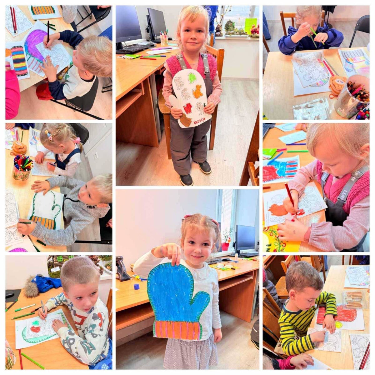Po pasakos sekė kūrybinė edukacija „Kas pirštinėje gyvena“, kurios metu vaikai atliko pateiktą užduotį – mąstė, kokie herojai galėtų apsigyventi pirštinėje, ir juos kūrybiškai pavaizdavo. Ši veikla skatino fantaziją, kalbinį aktyvumą bei tarpkultūrinį pažinimą.