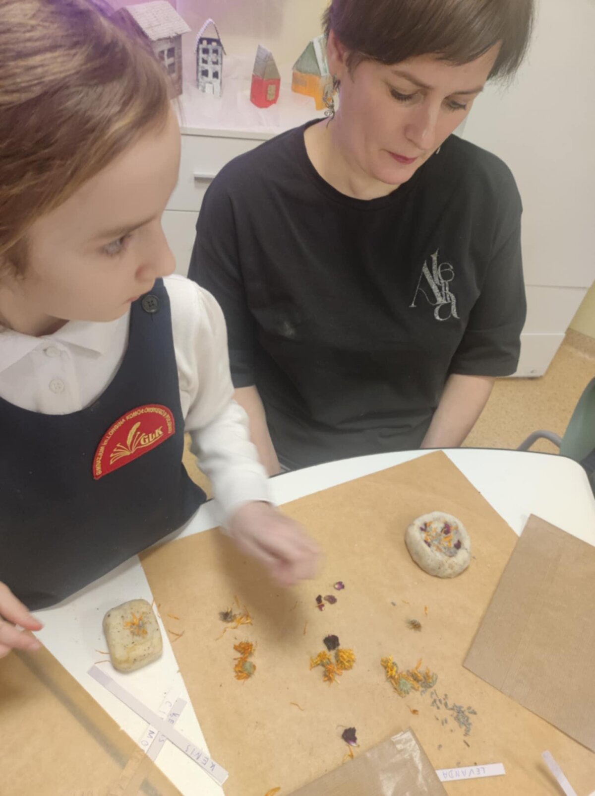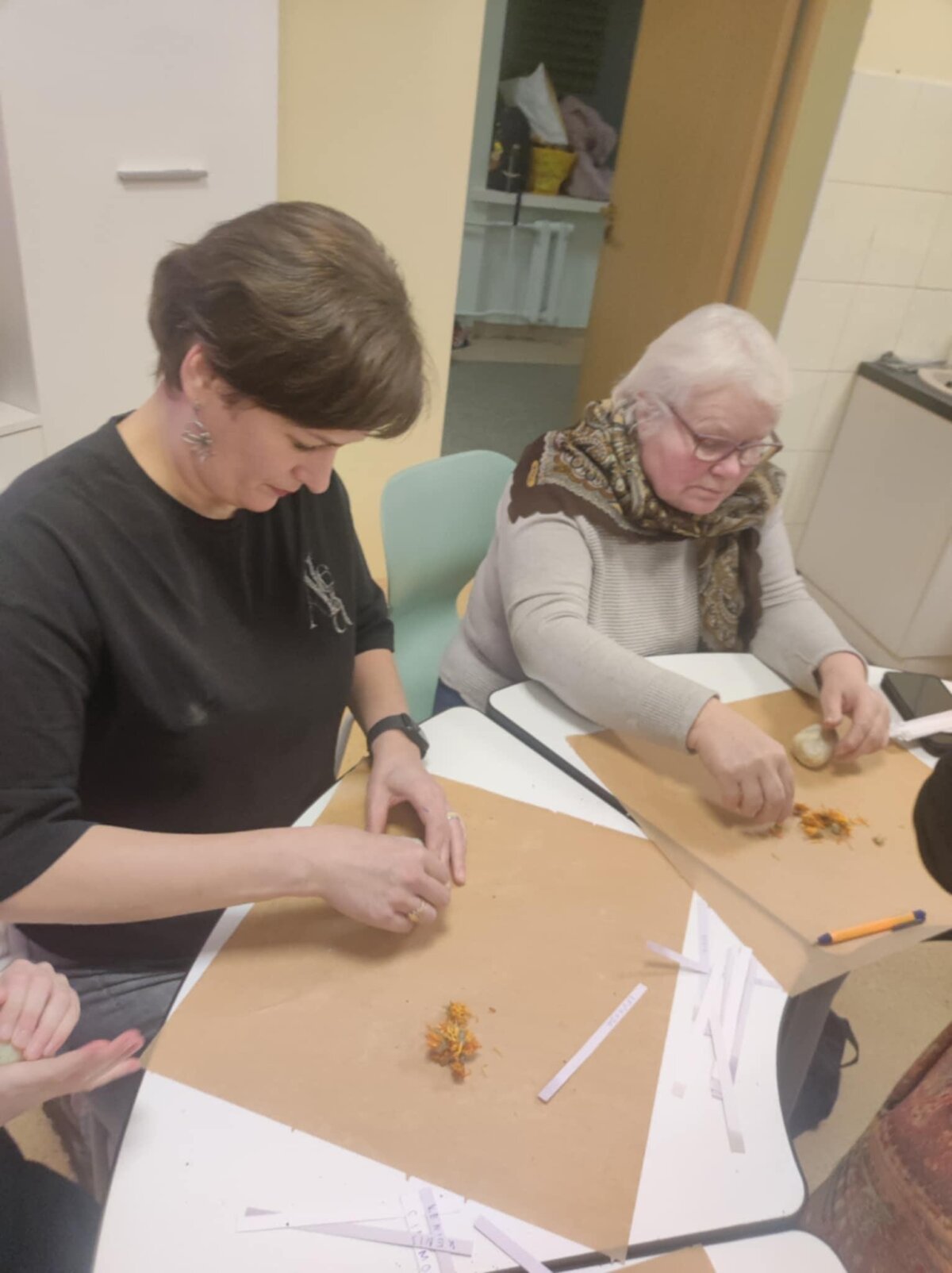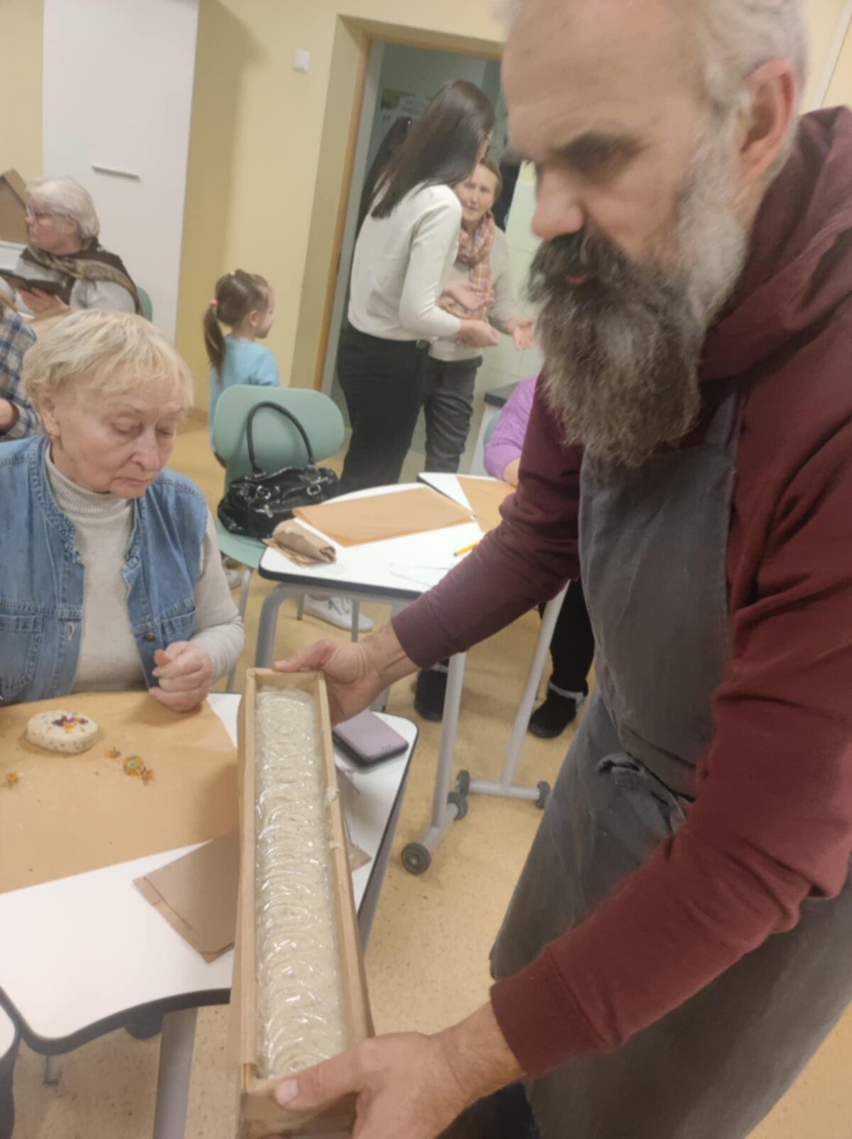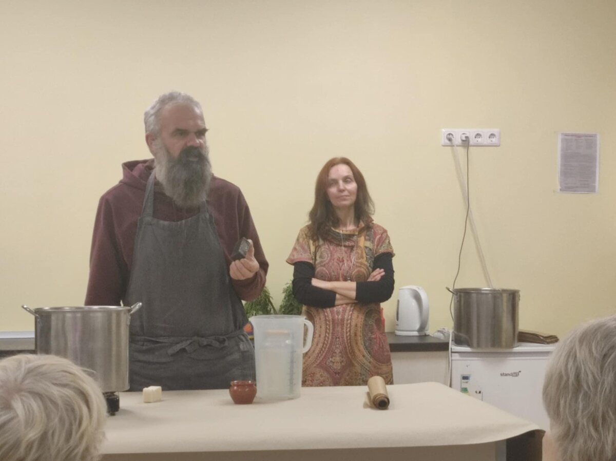 Wczoraj odbyły się edukacyjne warsztaty dla wspólnoty, które poprowadziła certyfikowana mistrzyni aromaterapii Sandra Mikutenienė. Spotkanie rozpoczęło się krótką opowieścią o historii mydła – od starożytnych Egipcjan, którzy już ok. 2000 lat p.n.e. używali mieszanek tłuszczu i popiołu do mycia i prania. Omówiono również rośliny bogate w saponiny, takie jak mydlnica czy kasztanowiec, stosowane dawniej jako naturalny zamiennik mydła.