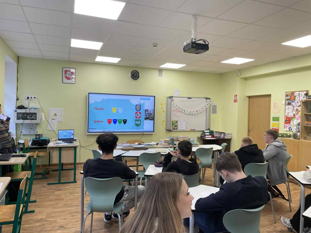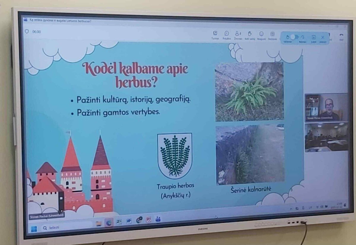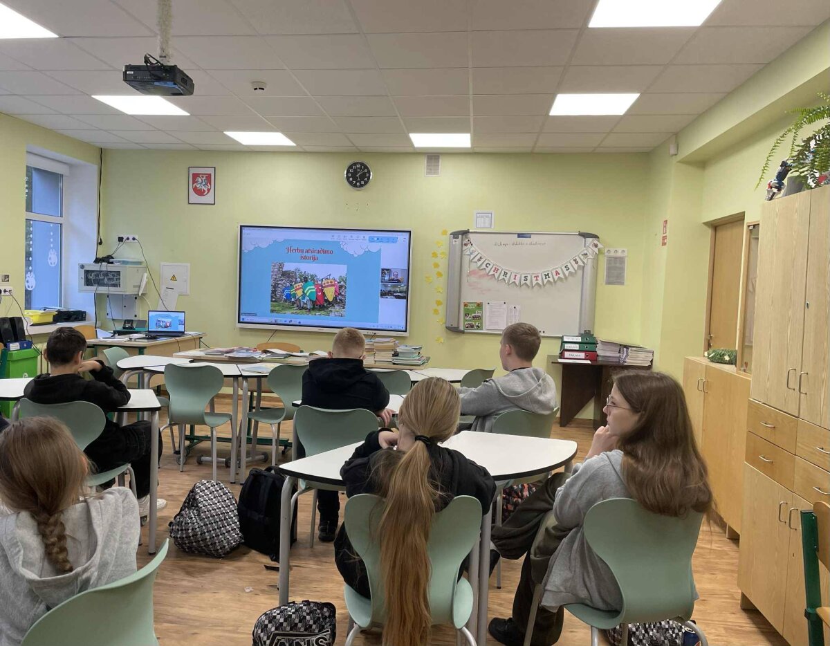 Podczas zajęć edukacyjnych „Co oznaczają rośliny i zwierzęta w litewskich herbach” uczniowie poznali historię powstawania herbów i zasady ich tworzenia: jakie były kształty herbów, jakie kolory są używane i jak się je łączy, co symbolizują kolory i figury oraz jaka jest kolejność ich układania. Dowiedzieli się również, jakie mogą być dodatkowe elementy herbu i jak się je stosuje. W oparciu o zdobytą wiedzę uczniowie klas 7–8 w sposób kreatywny stworzyli własne, indywidualne herby.
