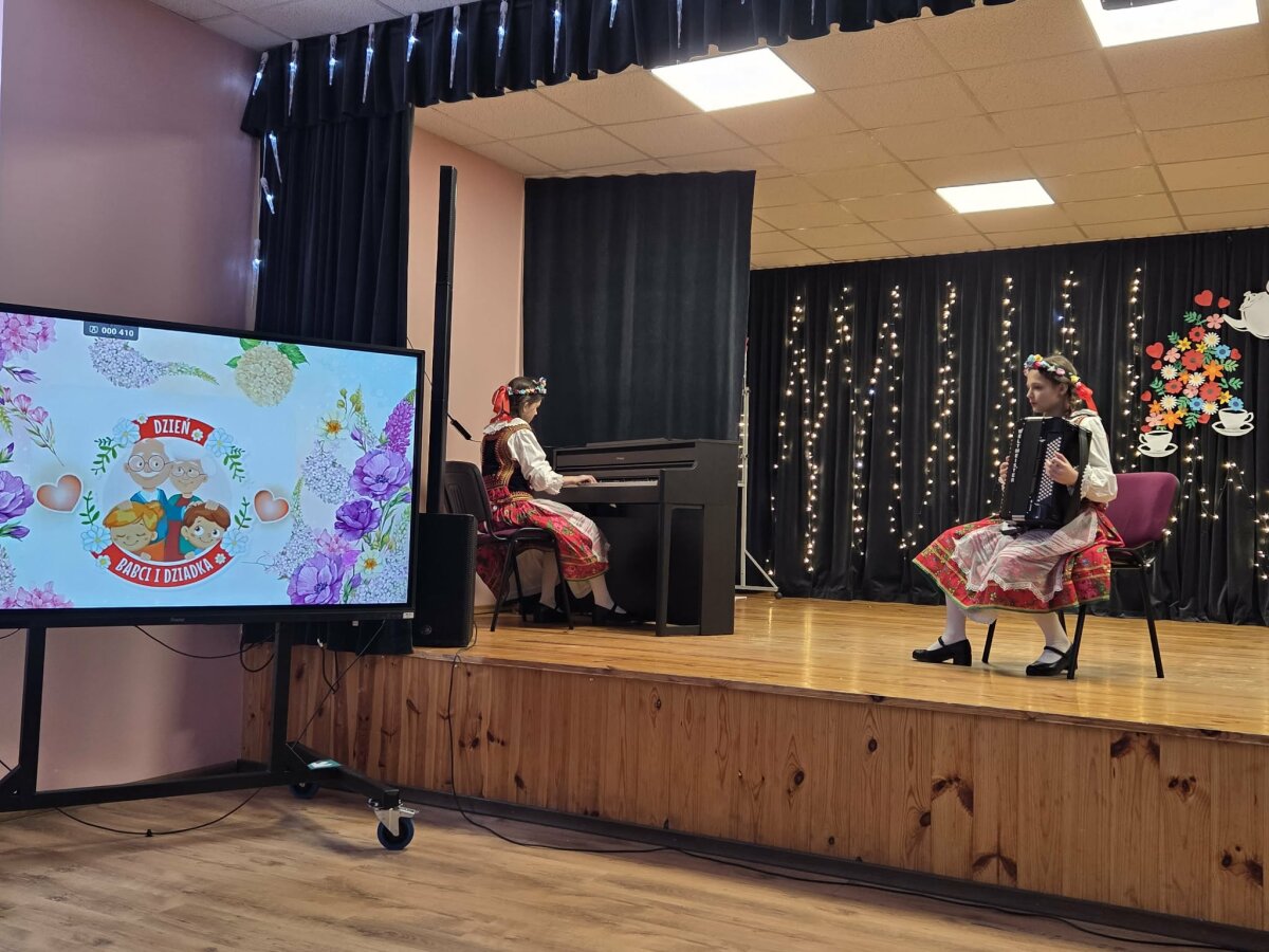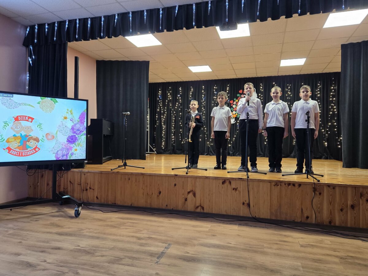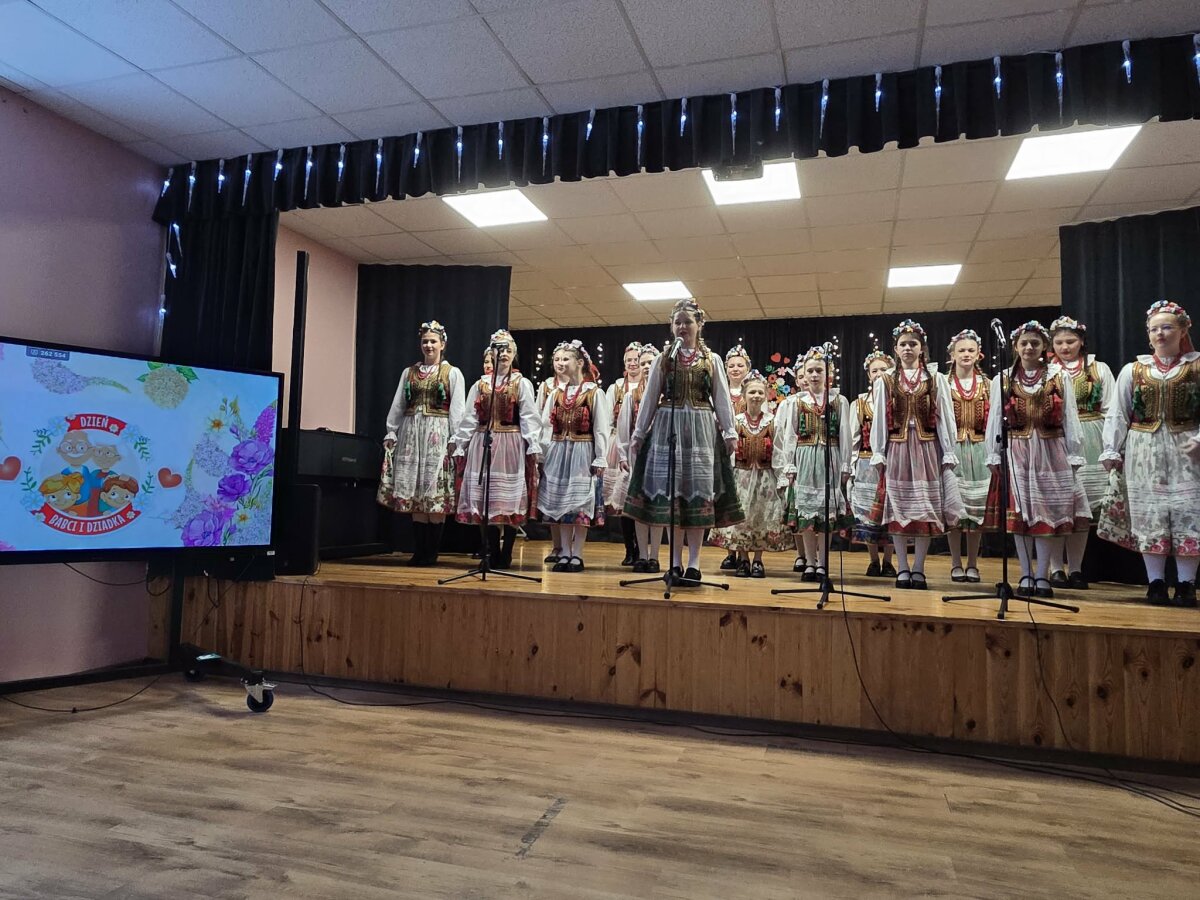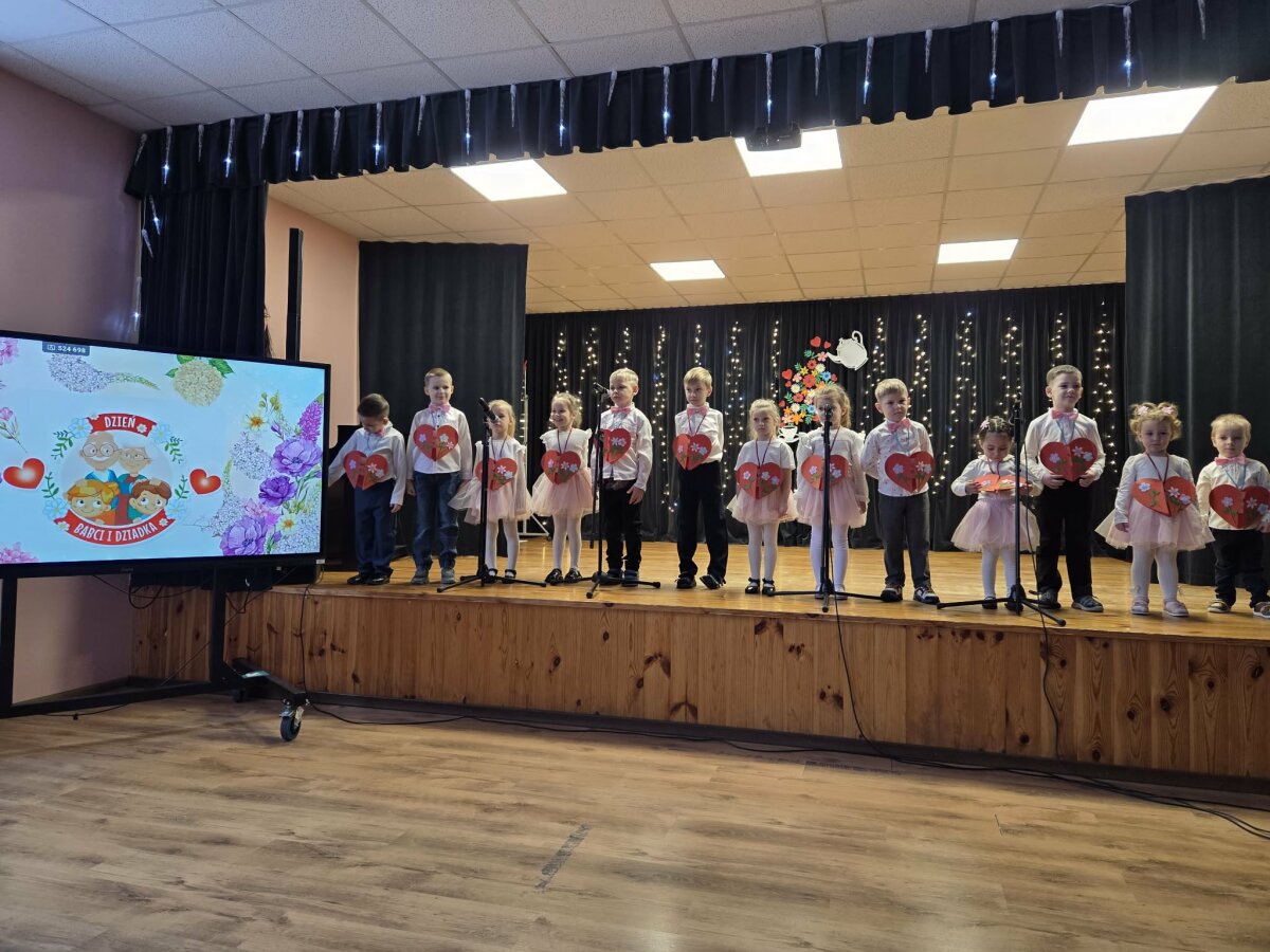 Na scenie zaprezentowały się dzieci z grup przedszkolnych oraz klas wczesnoszkolnych. Najmłodsi z radością śpiewali piosenki i składali swoim babciom oraz dziadkom serdeczne, płynące prosto z serca życzenia. Uczniowie klas początkowych przygotowali zabawną scenkę z udziałem babci i dziadka – dzieci przebrane w stroje seniorów nie tylko rozbawiły publiczność, ale także zachwyciły wszystkich energicznym tańcem.