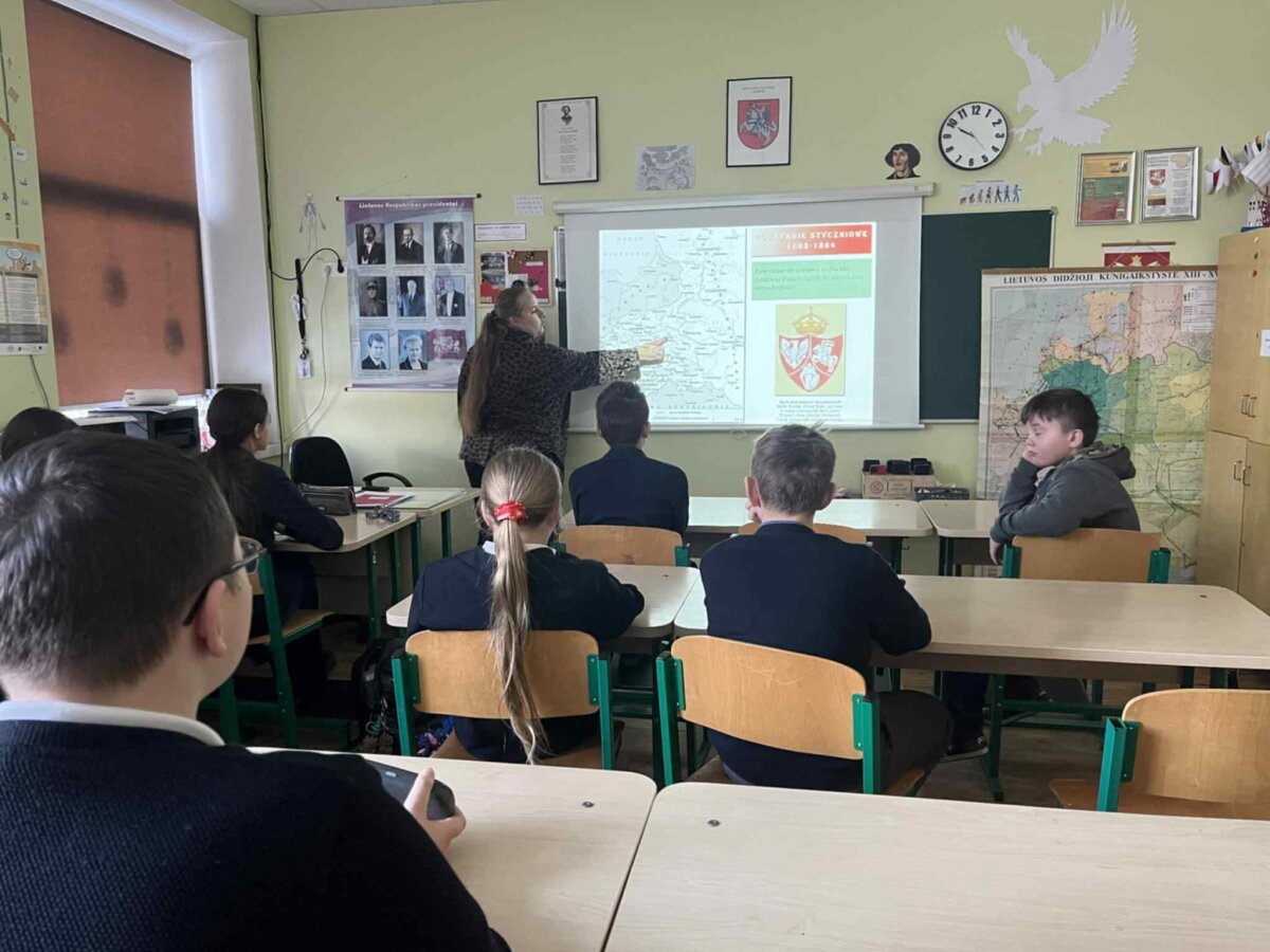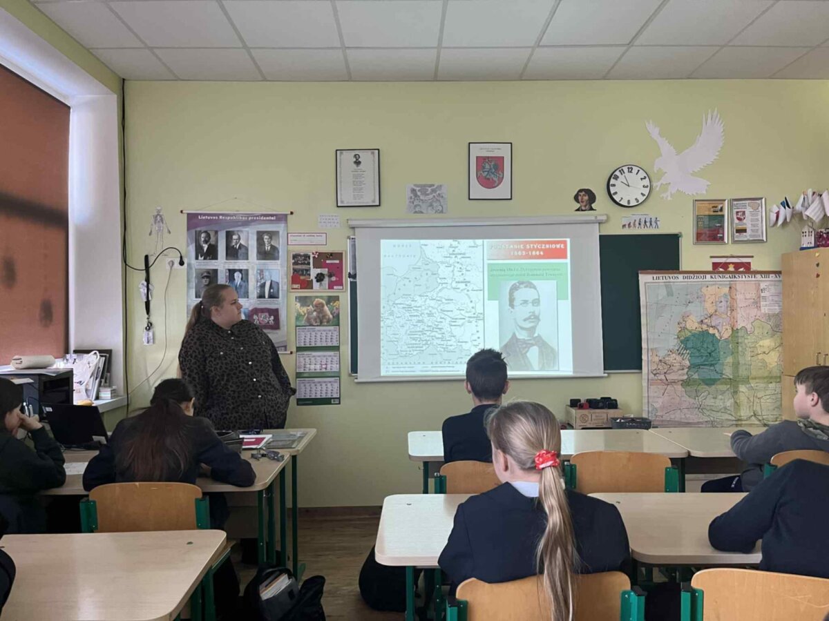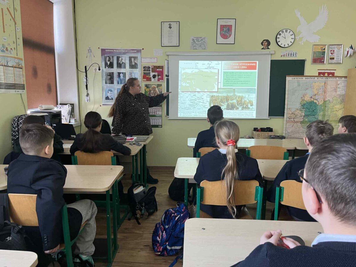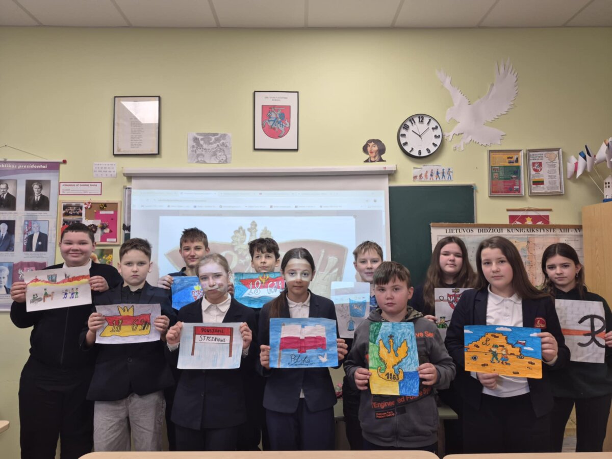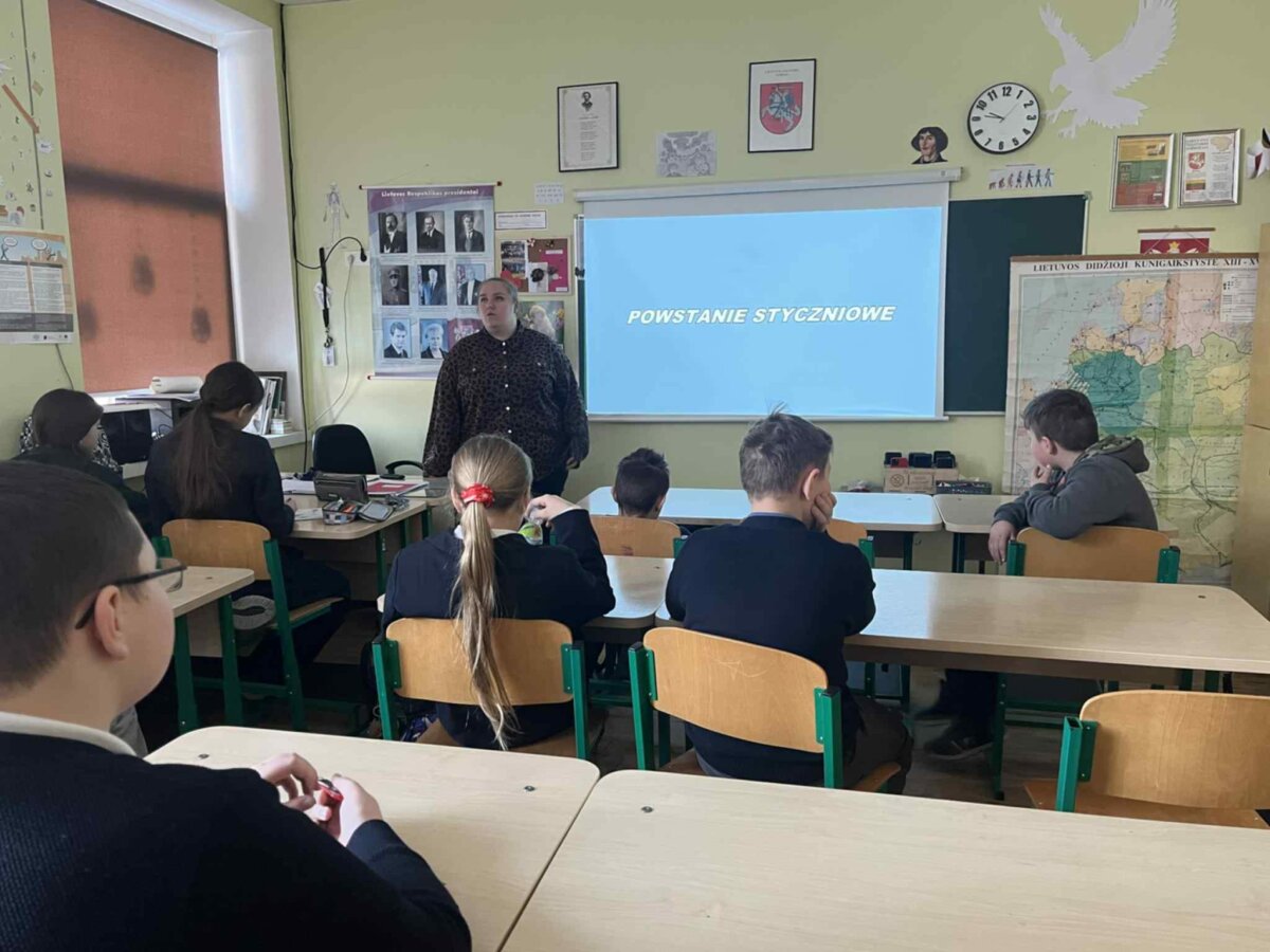 Podczas lekcji poznaliśmy przyczyny wybuchu powstania, jego przebieg oraz skutki, takie jak represje carskie, konfiskaty majątków, zsyłki na Sybir i nasilona rusyfikacja. Szczególną uwagę poświęcono postaciom związanym z powstaniem styczniowym na ziemiach litewskich, m.in. Zygmuntowi Sierakowskiemu, Konstantemu Kalinowskiemu oraz Antanasowi Mackevičiusowi – bohaterom, którzy z odwagą i poświęceniem walczyli o wolność i godność narodów.