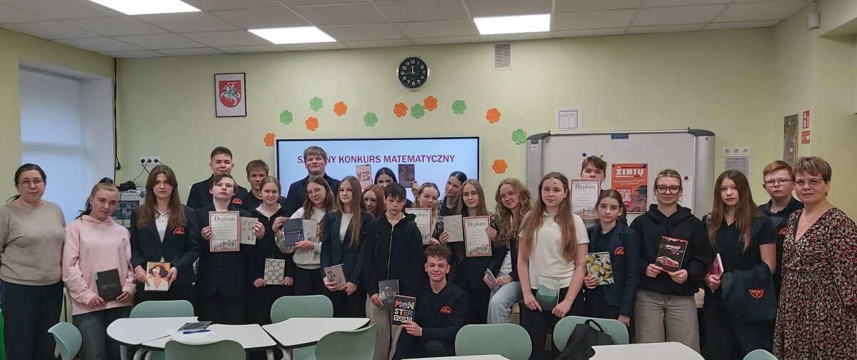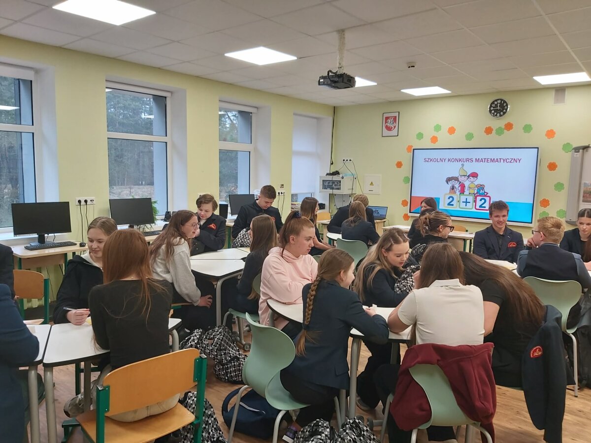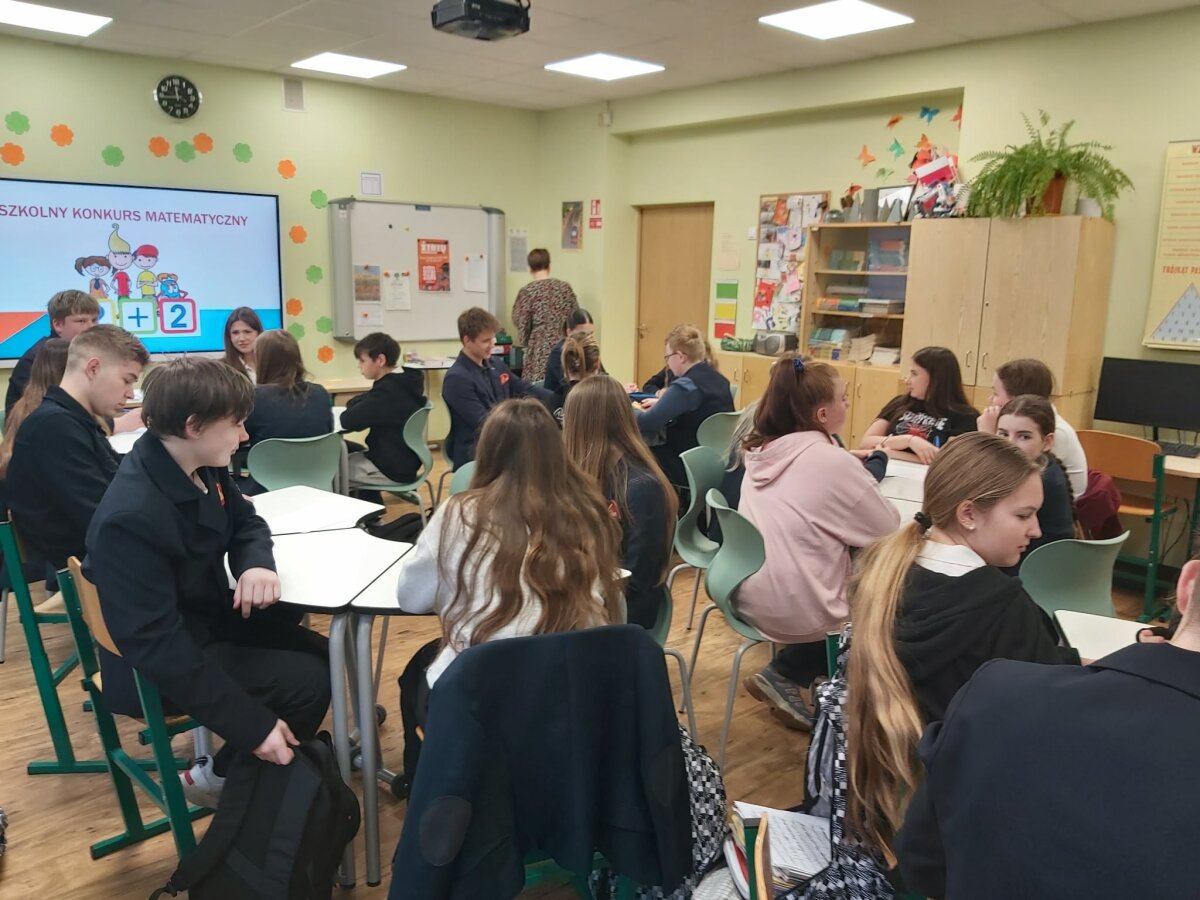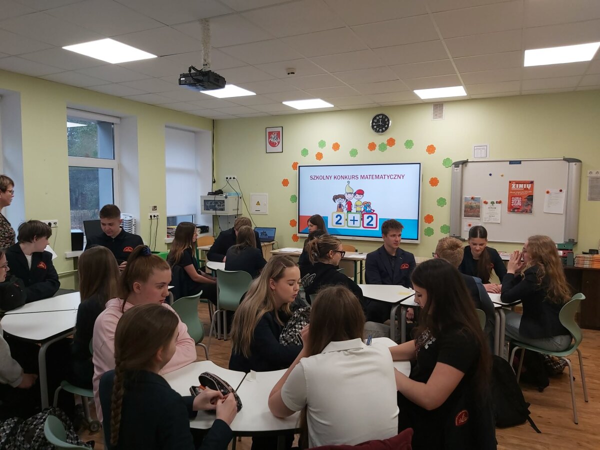 Dnia 16 kwietnia w naszym gimnazjum odbył się tradycyjny szkolny konkurs matematyczny „2+2”. Wzięli w nim udział uczniowie klas 7–10, którzy mieli okazję sprawdzić swoją wiedzę oraz umiejętności logicznego myślenia. Konkurs przebiegał w przyjaznej, ale pełnej skupienia atmosferze, a zadania wymagały nie tylko znajomości matematyki, lecz także sprytu i kreatywności. Gratulujemy wszystkim uczestnikom zaangażowania i odwagi w podjęciu wyzwania!
