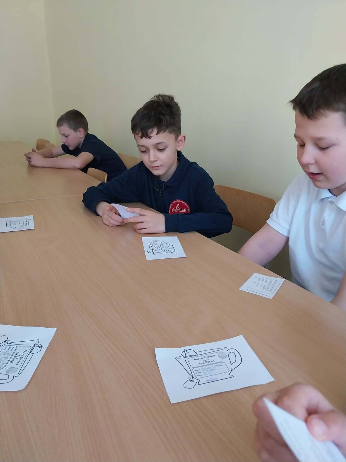 Students also practised being polite, using phrases like “Would you like…?” and “Can I have…?” in speaking activities. They created their own invitations to a tea party and then enjoyed a mini tea party in the school canteen, practising real-life conversations while having tea and croissants.