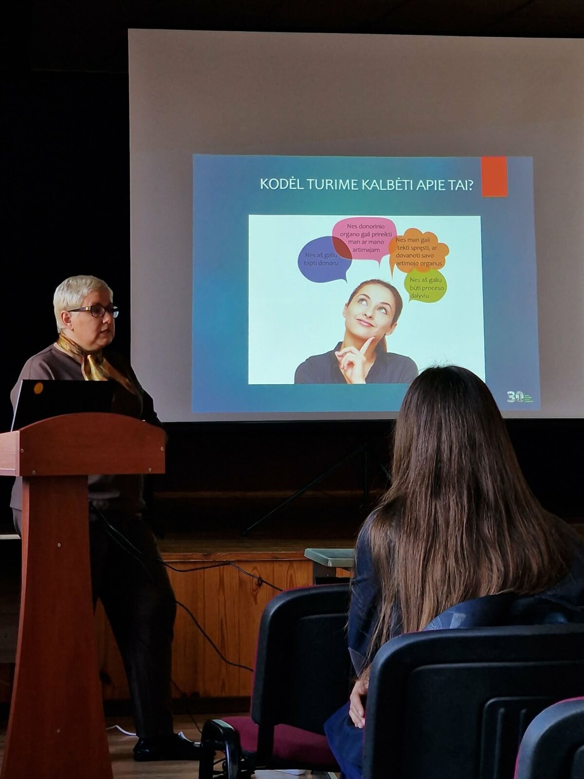 Paskaitos metu mokiniai buvo supažindinti su organų donorystės svarba, jos reikšme visuomenei bei galimybe išgelbėti gyvybes. Lektorė aiškiai ir jautriai pristatė, kaip donorystė padeda sunkiai sergantiems žmonėms, suteikdama jiems antrą šansą gyventi. Taip pat buvo aptarti dažniausiai kylantys mitai apie donorystę ir pateikti mokslu pagrįsti paaiškinimai, skatinantys kritinį mąstymą.